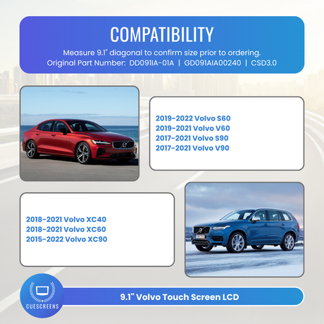 9.1" Volvo LCD Replacement Screen DD091IA-01A 32247465 (XC90, XC40, S60, X60)