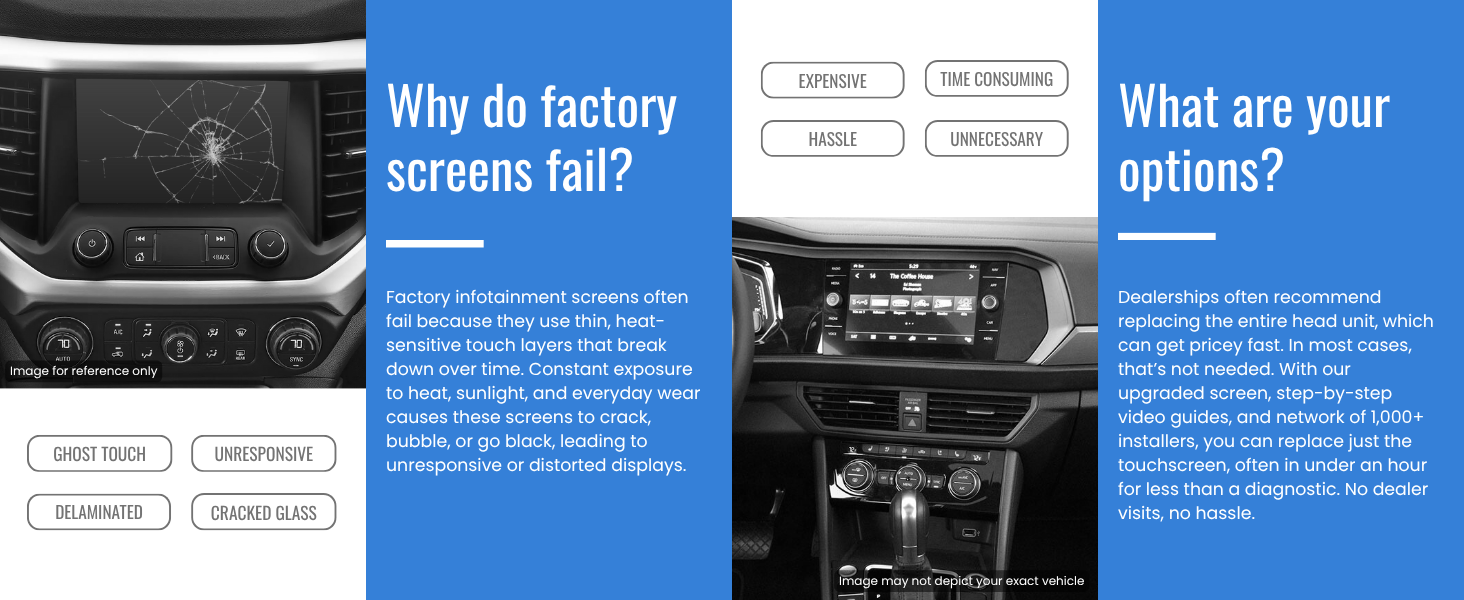 If your Uconnect screen is bubbling, ghost touching, or driving you crazy, this is the permanent solution. Install it once and enjoy a screen that works the way it should have from the factory.
